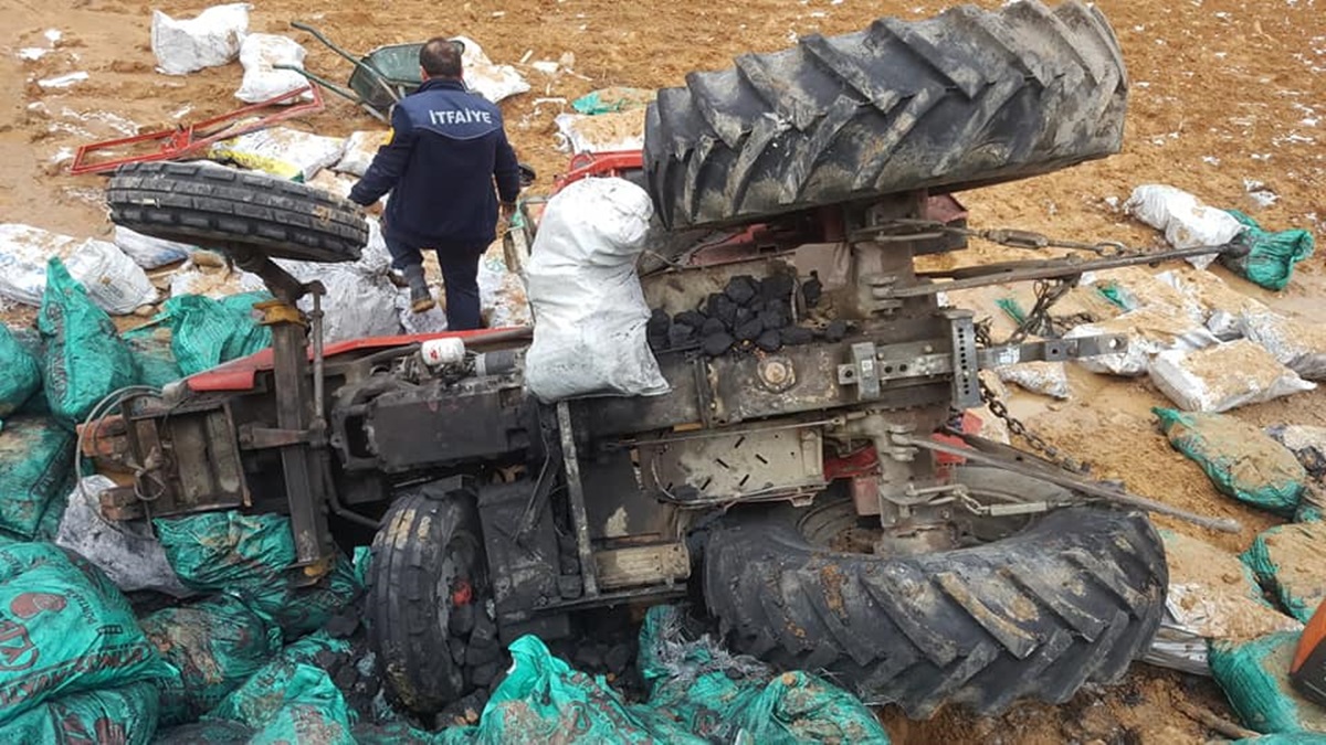 Çorum-Mecitözü yolunda kömür yüklü bir traktör otomobille çarpıştıktan sonra şarampole devrildi....