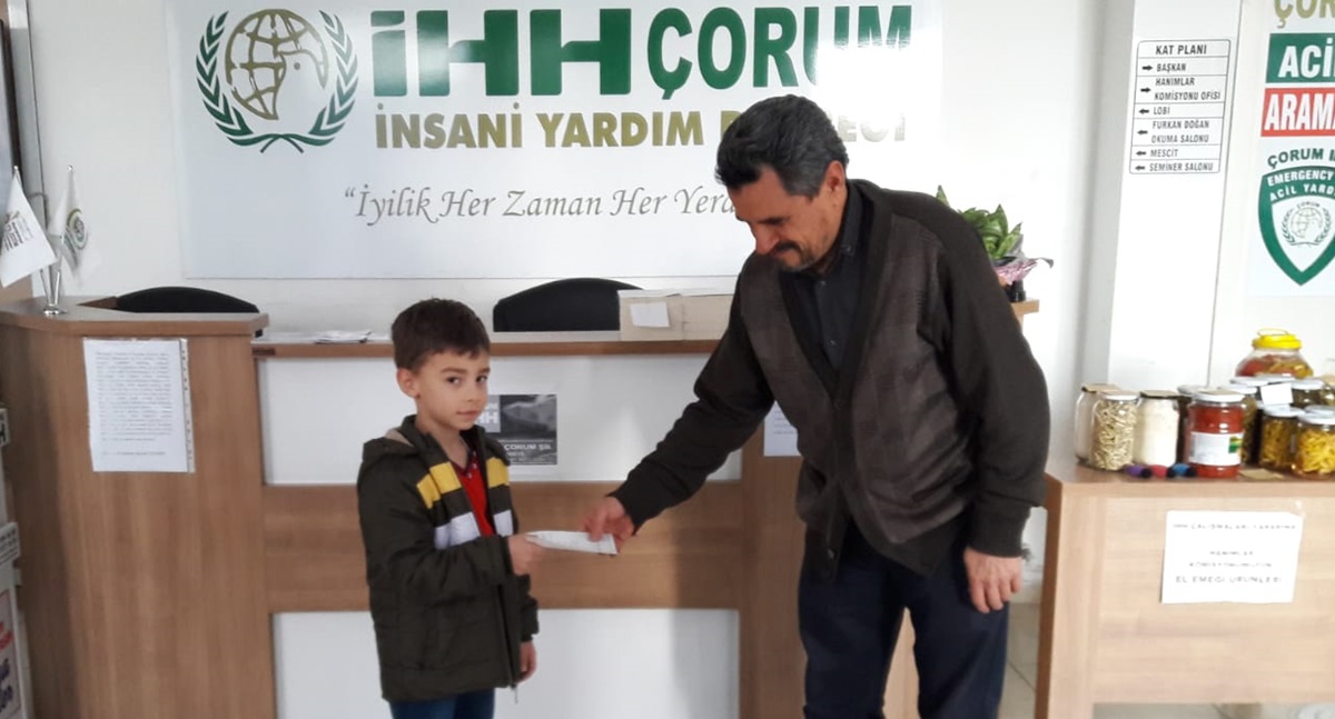 Çorum da ilkokul öğrencisi 8 yaşındaki Emir Çakar, kumbarasında biriktirdiği paraları İdlib’e yollamak için Çorum İHH insani yardım vakfına teslim etti....