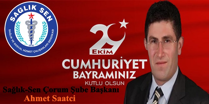 Sağlık-Sen Çorum Şube Başkanı Ahmet Saatci, Cumhuriyet Bayramı nedeniyle yayınladığı mesajında, "Türkiye Cumhuriyeti’nin kuruluşunun 96'ncı yıldönümünü milletçe büyük bir coşku ve heyecanla idrak ediy...