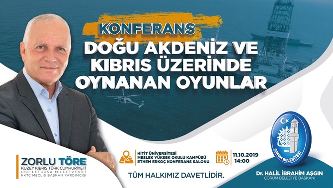 Çorum Belediyesi tarafından “Kıbrıs Üzerinde Oynanan Oyunlar” adlı konferans düzenlenecek. Konferansta Kuzey Kıbrıs Türk Cumhuriyeti USB Lefkoşa Milletvekili ve Meclis Başkan Yardımcısı Zorlu Töre kon...