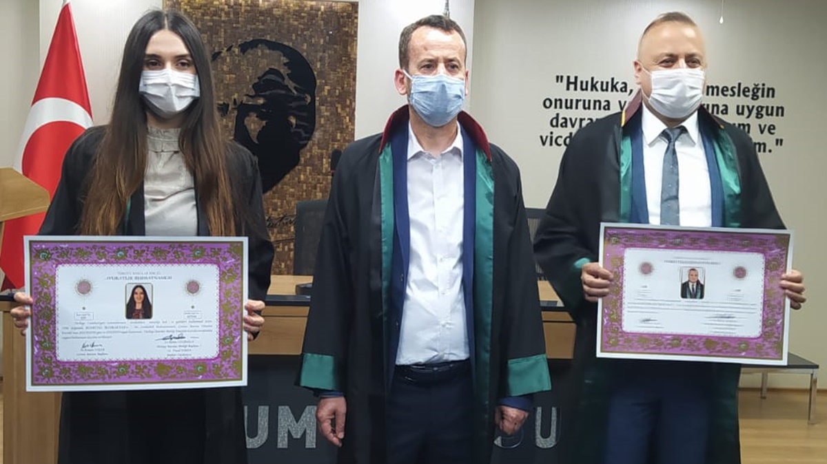 Avukatlık stajlarını başarıyla tamamlayıp mesleğe başlama hakkı kazanan 2 genç avukat Çorum Barosu Konferans Salonu’nda düzenlenen törenle yemin edip, ruhsatnamelerini alarak resmen mesleklerine ilk a...