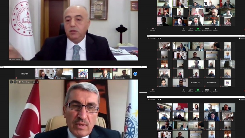 Milli Eğitim Bakanlığı Öğrenme Genel Müdürü Yusuf Büyük ile Hayat Boyu Öğrenme Biriminden Sorumlu Şube Müdürü Hamza Kalınsazlıoğlu,video konferans yöntemiyle Çorum İlçe Milli Eğitim Müdürleri ve ve Ha...
