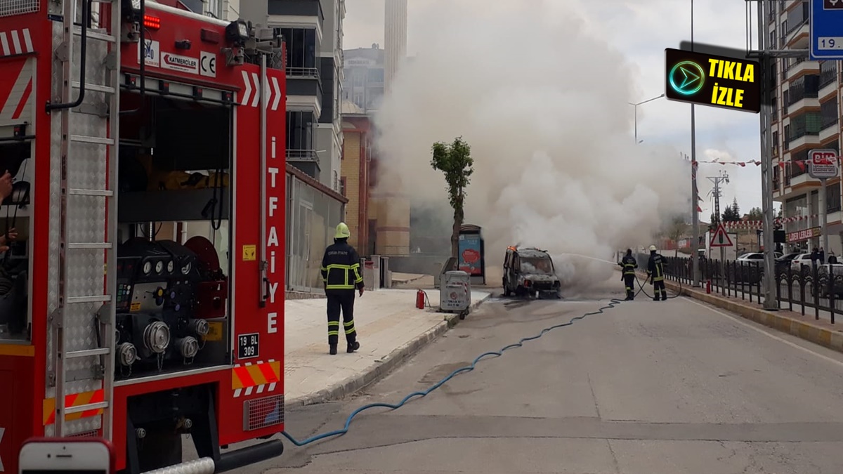 Çorum’da seyir halinde motoru tutuşan ticari araç alev topuna döndü....
